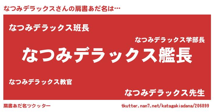 | 欧米人風あだ名 | 『なつみデラックス・ステッグマイヤー』 |