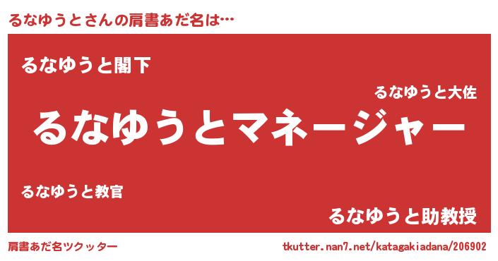 | 意味不明あだ名 | 『自称るなゆうと』『永久保存るなゆうと』 |