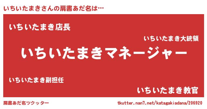| 男性向けラノベタイトル風あだ名 | 『いちいたまきに滅ぼされるだけの簡単なお仕事です』 |