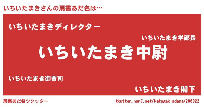 | 男性向けラノベタイトル風あだ名 | 『転生したらいちいたまきだった件』 |
