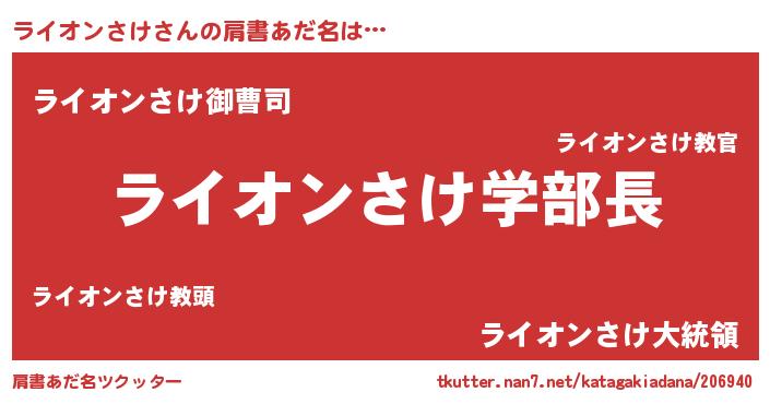 男性向けラノベタイトル風あだ名 | 『おまえをオタクにしてやるから、俺をライオンさけにしてくれ! 』 |