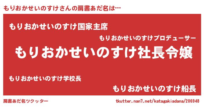 女子向けラノベタイトル風あだ名 | 『誰かこのもりおかせいのすけを説明してください! ~契約から始まるウェディング~』 |