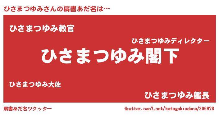 ヘコむあだ名 | 『ひさまつゆみ(小並感)』『ひさふぇ~』 |