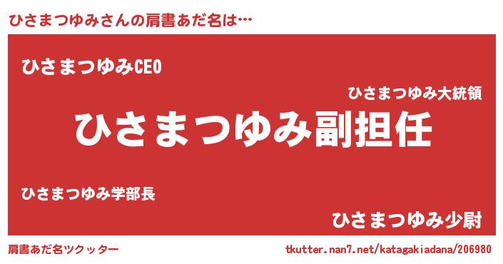 ヘコむあだ名 | 『ひさまつゆみ(遠い目)』『ひさふぇ~』 |
