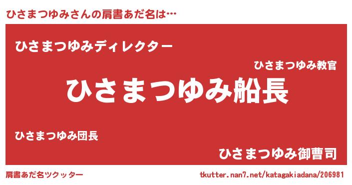 | 男性向けラノベタイトル風あだ名 | 『緋弾のヒサマツユミ』 |