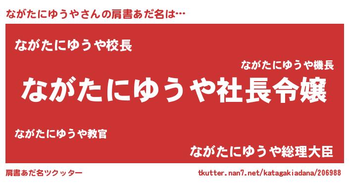 男性向けラノベタイトル風あだ名 | 『ながたにゆうやの憂鬱』 |