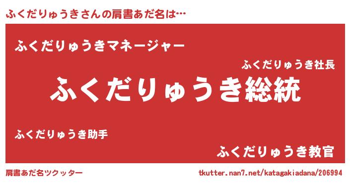 | 女子向けラノベタイトル風あだ名 | 『ふくだりゅうきストレイドッグス』 |