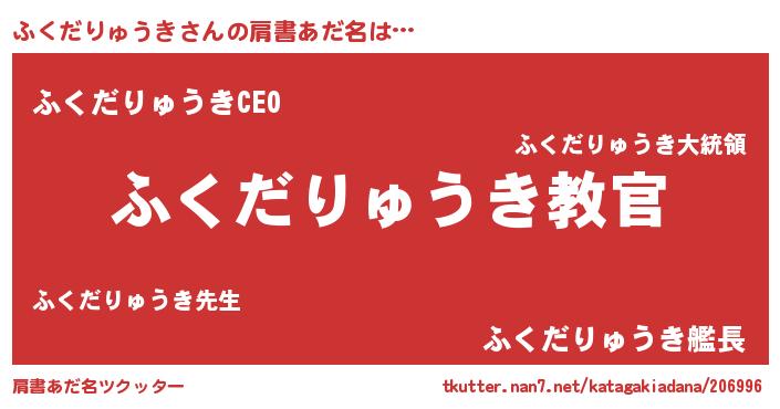 | 男性向けラノベタイトル風あだ名 | 『魔弾の王とふくだりゅうき』 |