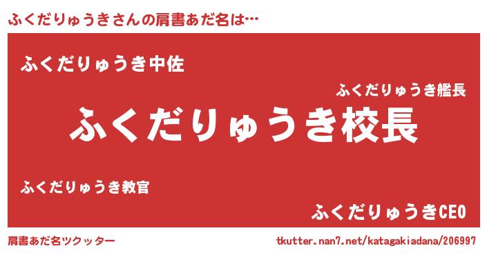 | 女子向けラノベタイトル風あだ名 | 『異世界で失敗しない100のふくだりゅうき』 |