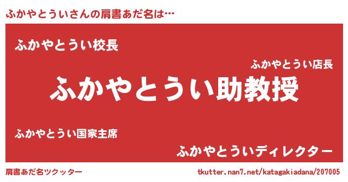| ヘコむあだ名 | 『ふかやとうい(笑)』『ふかにゅー』 |