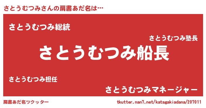 | ヘコむあだ名 | 『さとを』『さとうむつみ(爆)』 |