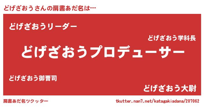男性向けラノベタイトル風あだ名 | 『どげざおうに滅ぼされるだけの簡単なお仕事です』 |