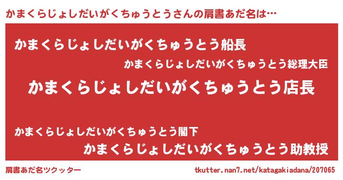 男性向けラノベタイトル風あだ名 | 『かまくらじょしだいがくちゅうとうの憂鬱』 |