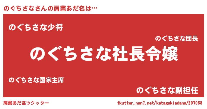 | ヘコむあだ名 | 『のぐもー』『のぐちさな(苦笑)』 |