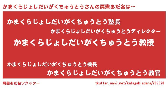 男性向けラノベタイトル風あだ名 | 『おまえをオタクにしてやるから、俺をかまくらじょしだいがくちゅうとうにしてくれ! 』 |