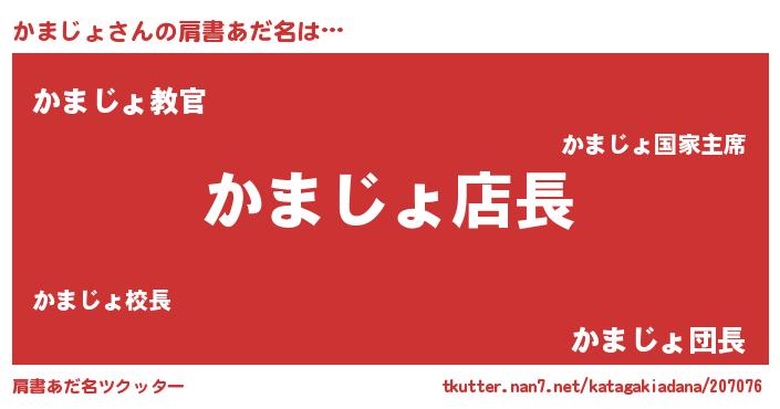 | ヘコむあだ名 | 『かまにゅー』『かまお』『なまこ酢』 |