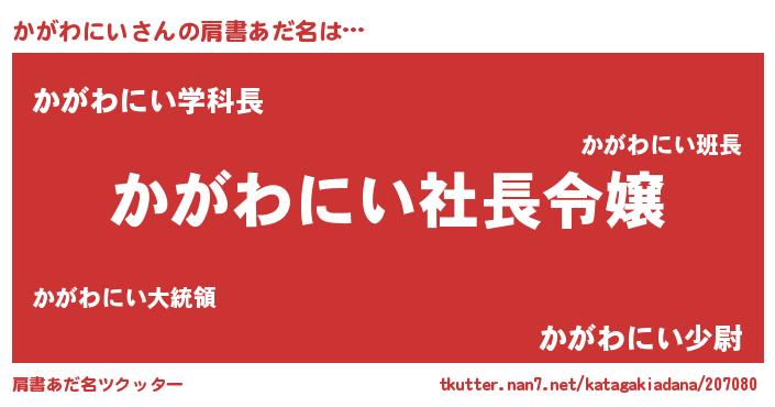 ヒーロー風カッコイイあだ名 | 『スーパーカガワニイ』『魔戒騎士カガ』 |