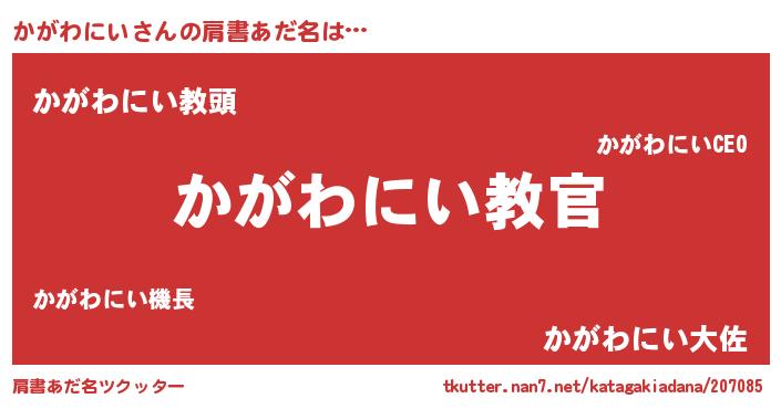 | ヘコむあだ名 | 『かがわにい(笑)』『かがふぇ~』 |