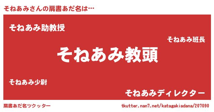 | ヒーロー風カッコイイあだ名 | 『ネオソネアミ』『正義の使者そねあみ』 |