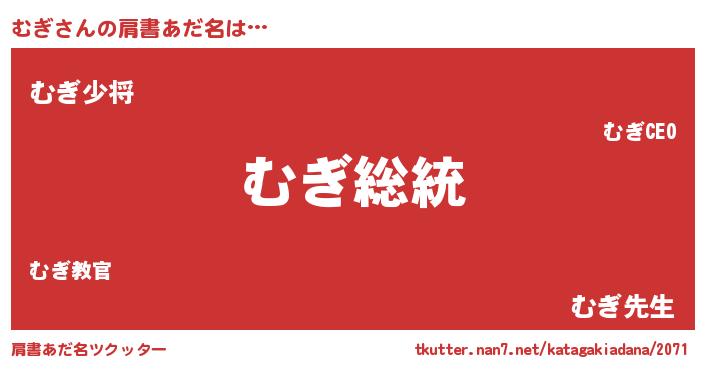 | 意味不明あだ名 | 『自称むぎ』『ヨモギ科むぎ属』 |