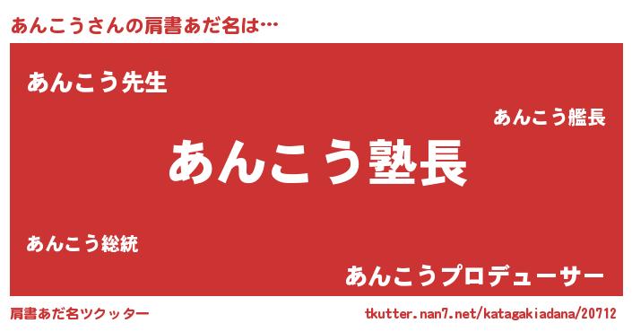 | ピコ太郎風あだ名 | 『アン四郎』『ピコア郎』『アア太郎』 |