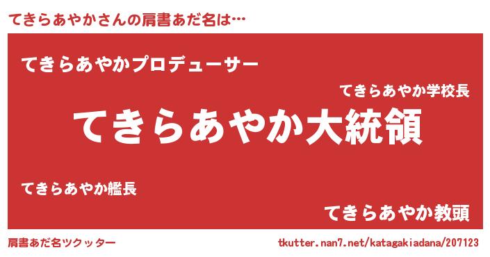 | 意味不明あだ名 | 『てきらあやかフォーエバー』 |