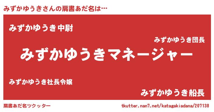 男性向けラノベタイトル風あだ名 | 『はたらくみずかゆうきさま!』 |