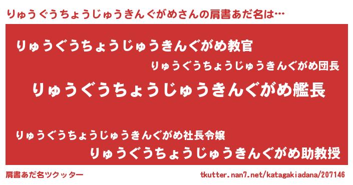 伝説のあだ名 | 『救世主となる占い師りゅうぐうちょうじゅうきんぐがめ』 |