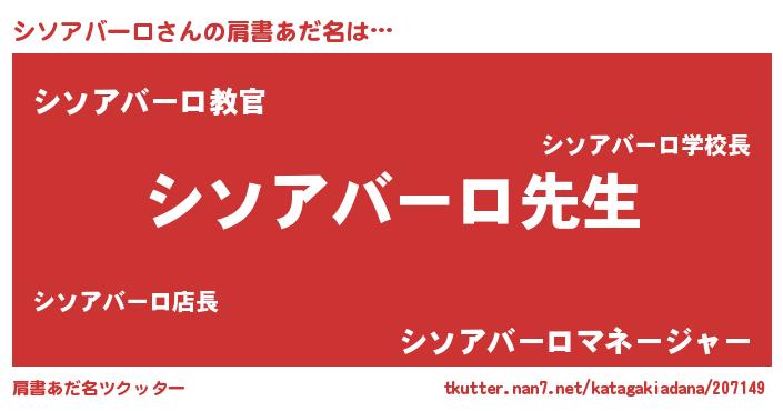 | 男性向けラノベタイトル風あだ名 | 『誰もが恐れるあのシソアバーロが、ぼくの専属メイドになるようです。』 |