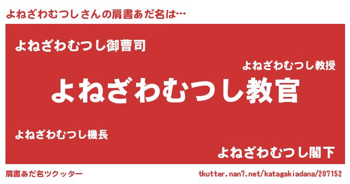 男性向けラノベタイトル風あだ名 | 『この素晴らしい世界によねざわむつしを!』 |