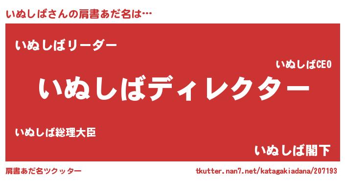 男性向けラノベタイトル風あだ名 | 『いぬしばに滅ぼされるだけの簡単なお仕事です』 |