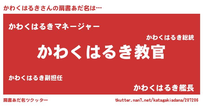 男性向けラノベタイトル風あだ名 | 『この素晴らしい世界にかわくはるきを!』 |