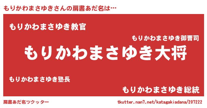 | 男性向けラノベタイトル風あだ名 | 『転生したらもりかわまさゆきだった件』 |