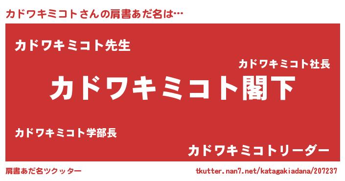 | 意味不明あだ名 | 『自称カドワキミコト』 |