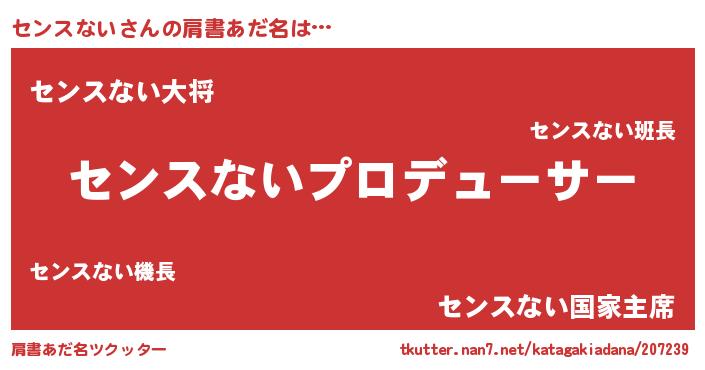 | 欧米人風あだ名 | 『アンジェラ・センスない』 |