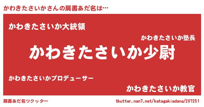ポケモン風あだ名 | 『カワキング』『カワキダネ』 |