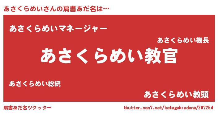 ヘコむあだ名 | 『あさくらめい(小並感)』『あさにー』 |