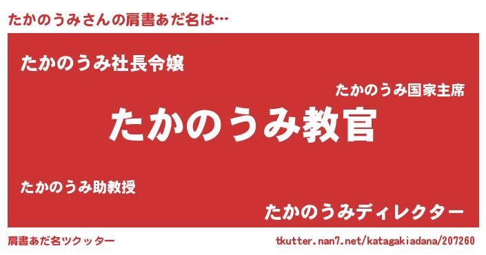 ヒーロー風カッコイイあだ名 | 『仮面タカダー』『スーパータカノウミ』 |