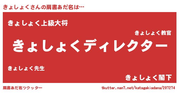 ヘコむあだ名 | 『きょしょく(笑)』『きょっふぃ~』 |