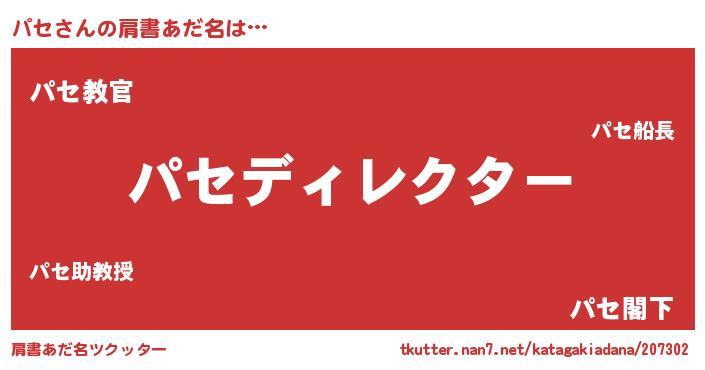 意味不明あだ名 | 『住所不定無職パセ(40歳)』『自称パセ』 |
