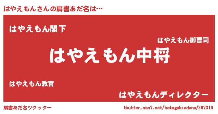 ヒーロー風カッコイイあだ名 | 『最強戦士ハヤエモン』『仮面ハヤダー』 |