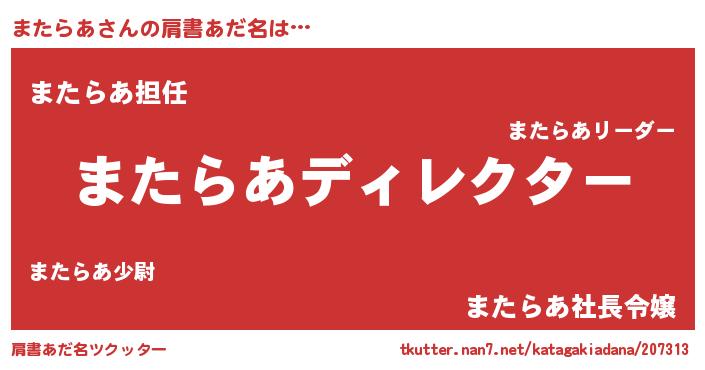 ヘコむあだ名 | 『またらあ(笑)』『またもー』 |