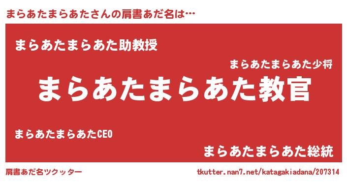 | 意味不明あだ名 | 『住所不定無職まらあたまらあた(39歳)』 |