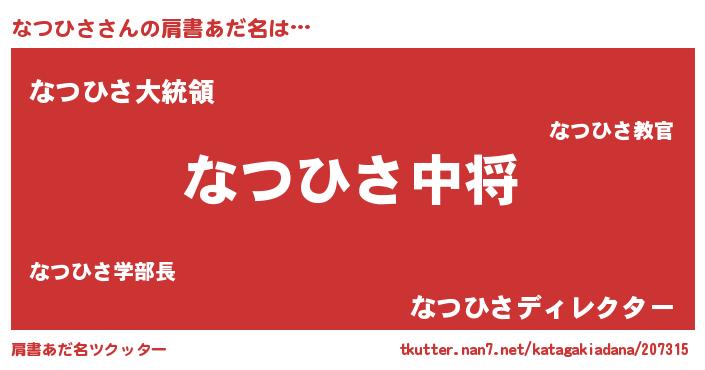 | ポケモン風あだ名 | 『ナツキング』『ナツヒダネ』 |