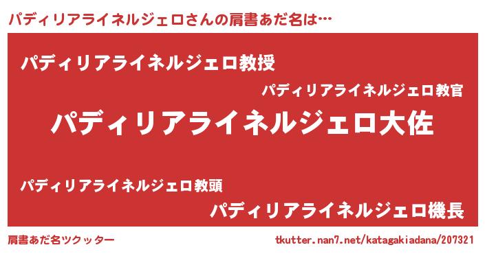 | 男性向けラノベタイトル風あだ名 | 『転生したらパディリアライネルジェロだった件』 |
