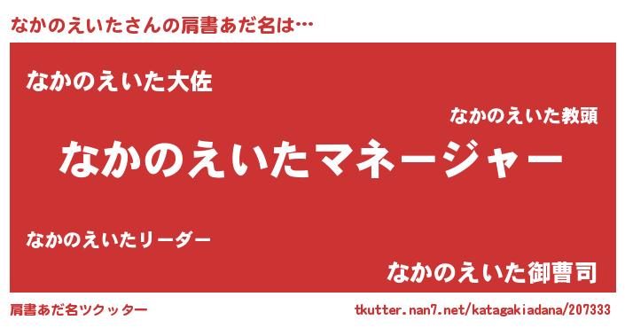 男性向けラノベタイトル風あだ名 | 『なかのえいたに滅ぼされるだけの簡単なお仕事です』 |