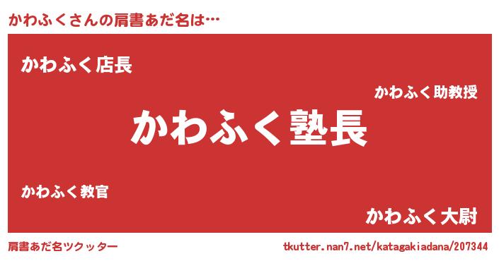 | 意味不明あだ名 | 『とにかく怪しいかわふく』 |