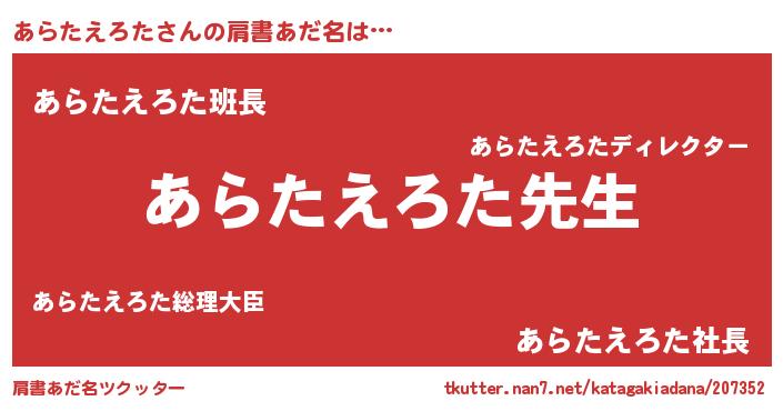 | 男性向けラノベタイトル風あだ名 | 『あらたえろたという概念が存在しない退屈な世界 』 |