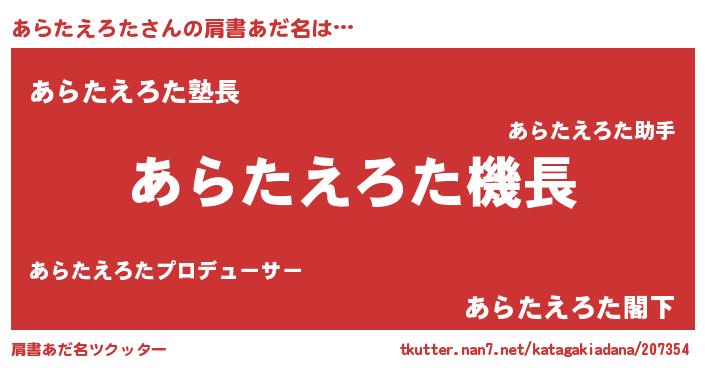 | 欧米人風あだ名 | 『あらたえろた・ステッグマイヤー』 |