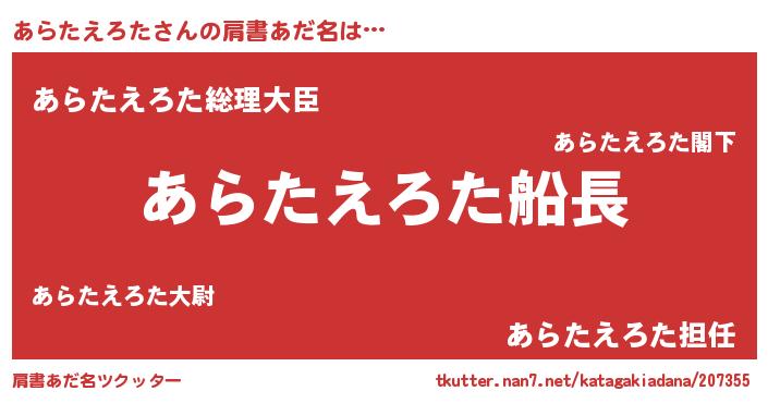 | 欧米人風あだ名 | 『あらたえろた・ステッグマイヤー』 |